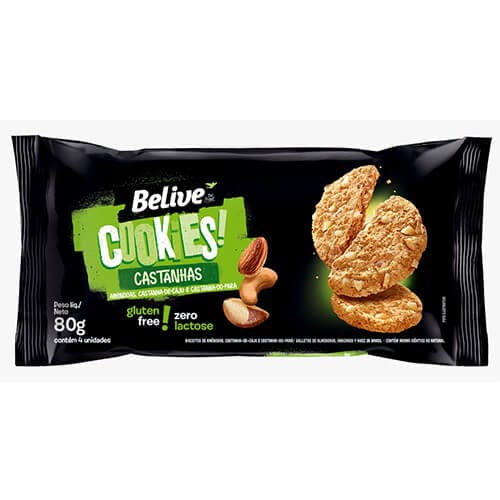 Mix sem glúten (farinha de arroz, fécula de mandioca, farinha de milho não transgênico, farinha integral de grão-de-bico, farinha de amêndoas), óleo de palma, açúcar cristal, mix de castanhas (castanha-de-caju, castanha-do-pará, amêndoas), açúcar orgânico de rapadura, ovo em pó, sal light, fermento químico (bicarbonato de sódio), emulsificantes (mono e diglicerídeos de ácidos graxos e goma xantana) e aromas. NÃO CONTÉM GLÚTEN. ALÉRGICOS: CONTÉM OVO, CASTANHA-DE-CAJU, CASTANHA-DO-PARÁ E AMÊNDOAS.